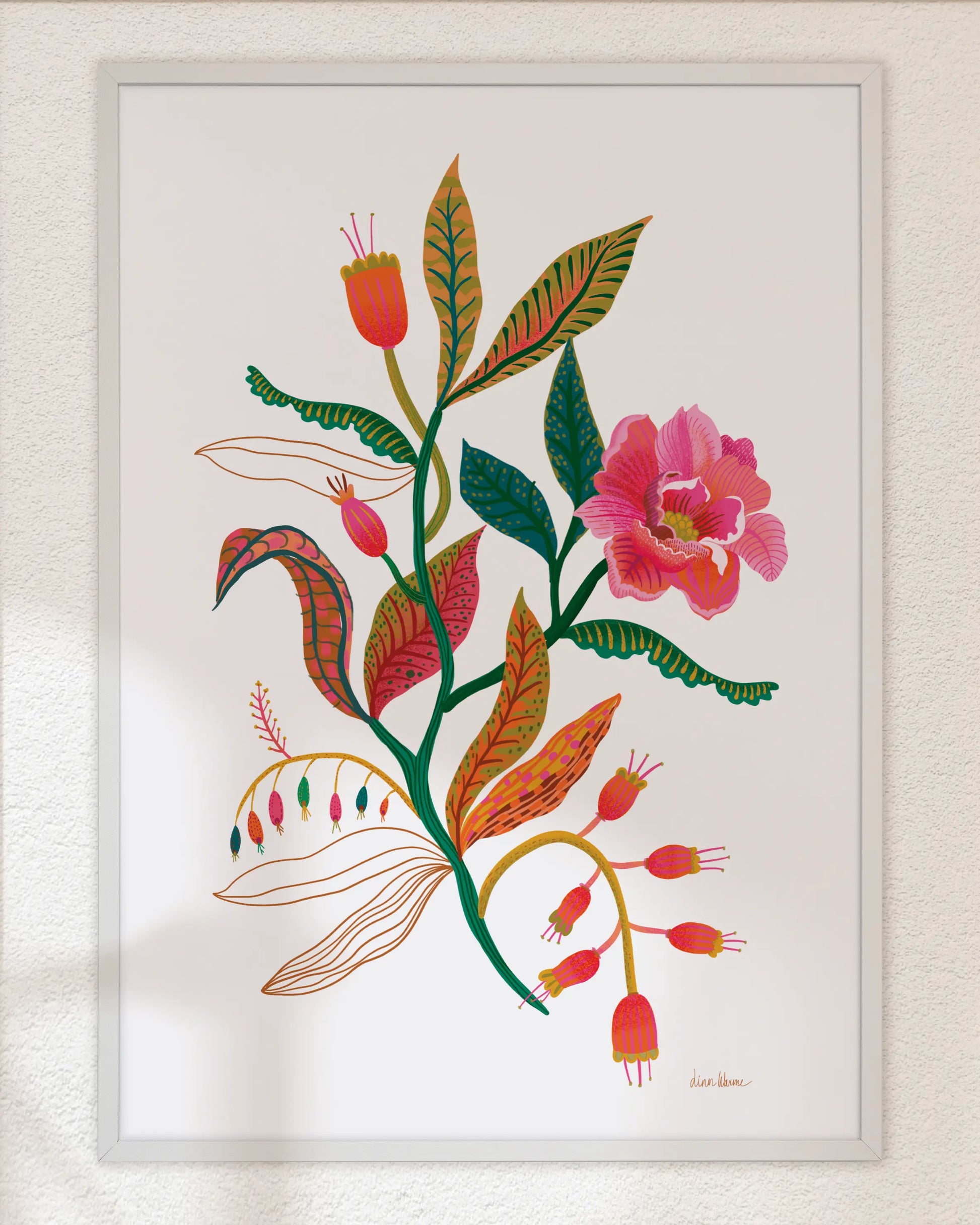 A joyful bloom with colorful leaves, soaking up the light on a crisp white background. This digital illustration brings a bright and lively energy to any room, with just the right mix of detail and cheer.